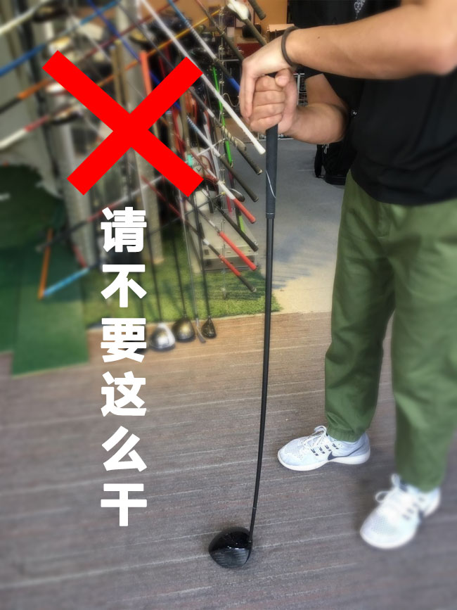 另外给大家普及一点,我最看不惯就是有些莫名奇妙的教练或者朋友拿来你的杆身就往地上压,像下图这样: