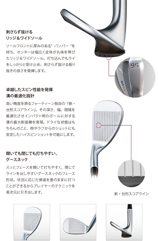 Fourteen DJ-33是Fourteen系列里容错最高的一款挖起杆,并且有超强的沙坑救球能力,杆面的底部是专门研发,宽底面能更好的滑过不同球位,从瞄球的角度看到杆面也很大,给选手提供足够的信心和容错性。