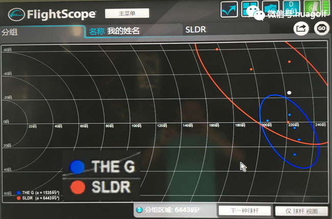 测试者明显感觉到415cc的杆头集中性更高,每一次挥杆的感觉更加接近,虽然THE G并没有打在甜蜜点上,但是可重复性高很多,因此球的散射率就比另一支好了很多(蓝色圈是415cc,红色是460):