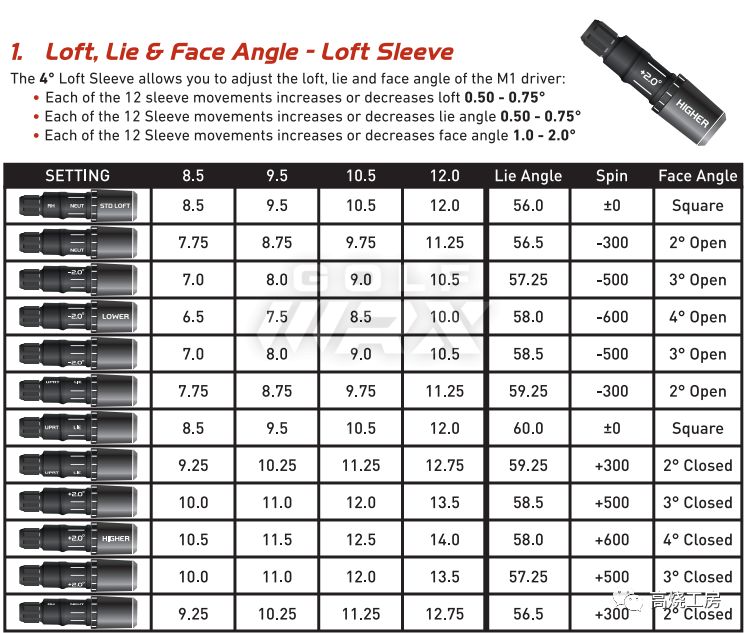 以上讲述的重心调节内容适用于所有的一号木杆头。