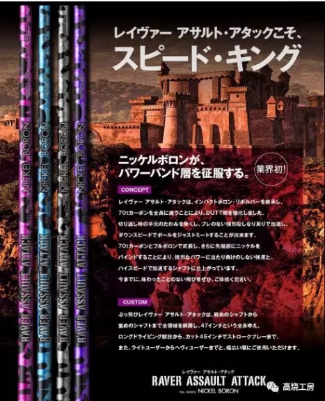 第一款是SPEED KING一号木杆身,采用镍硼混合材料的70T高吨位碳布制作而成。杆身重量在48克到70克之间。