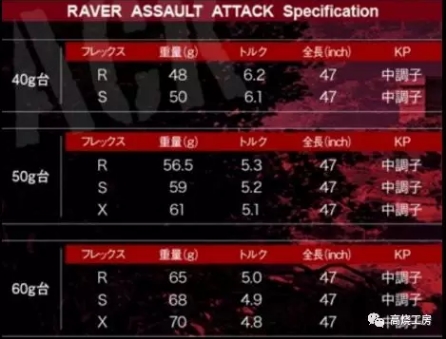 REVE的一号木杆身的任意重量、硬度都有4种颜色可选(灰、紫、蓝、粉,文中的实拍图是紫色和灰色杆身)。众多选择足以说明杆身的销量是多么好了。以下是球道木,铁木杆,铁杆杆身规格表:
