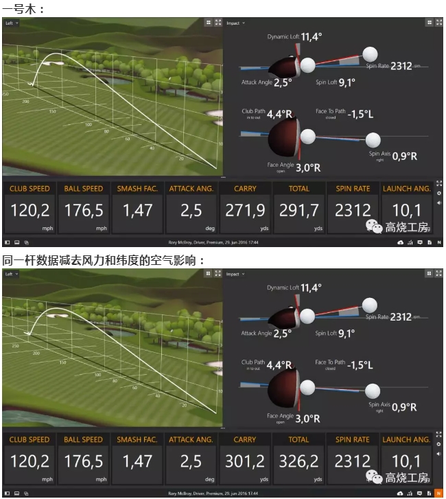 这一杆的数据并不是他们的平均数据,只是一杆的数据而已,所以一方面也有可能没有完全打出最完美的状态,另一方面也有可能他们会控制自己的球路来打出特定弹道。不过,刚好这世界最顶级的4个一号木选手的四颗球,带来四种不同的风格,也希望大家了解,并不一定有一个数据是完美的,你看最顶尖的选手也会选择不同的弹道,结合自己的挥杆方式,控制球路,打直,并且打远,才是最优的选择。